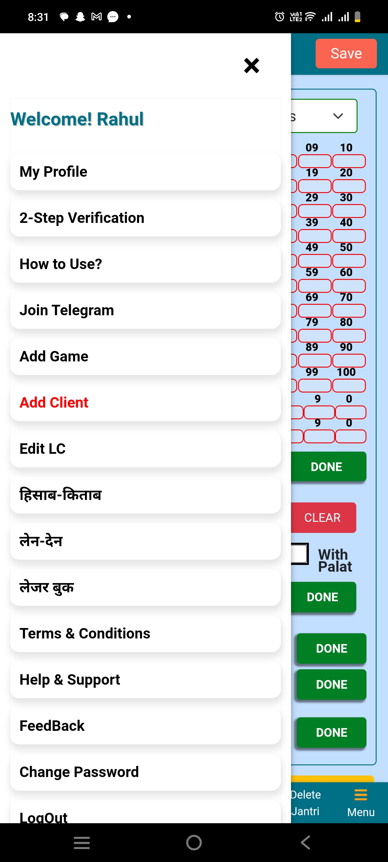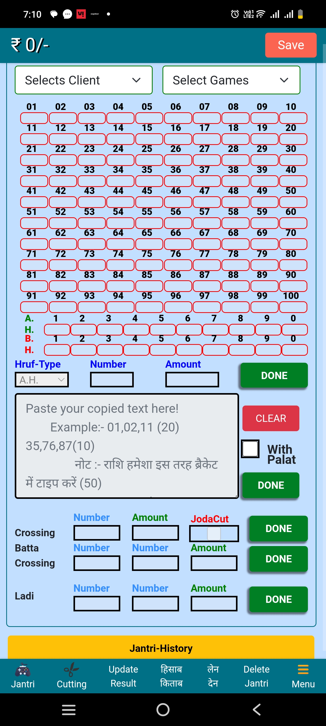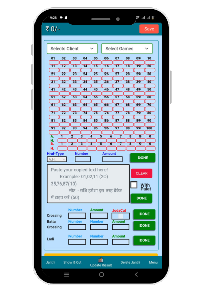 This APP Providing a Copy-Paste Tool to Copy Your Kaam on Whatsapp and Fill Jantri and Cutting Features to Cutting Jantri and Send Other Clint and Generate Hisab-Kitab, Len-Den Daily Basis and Generate Laser-Book Monthly and Daily Basis !